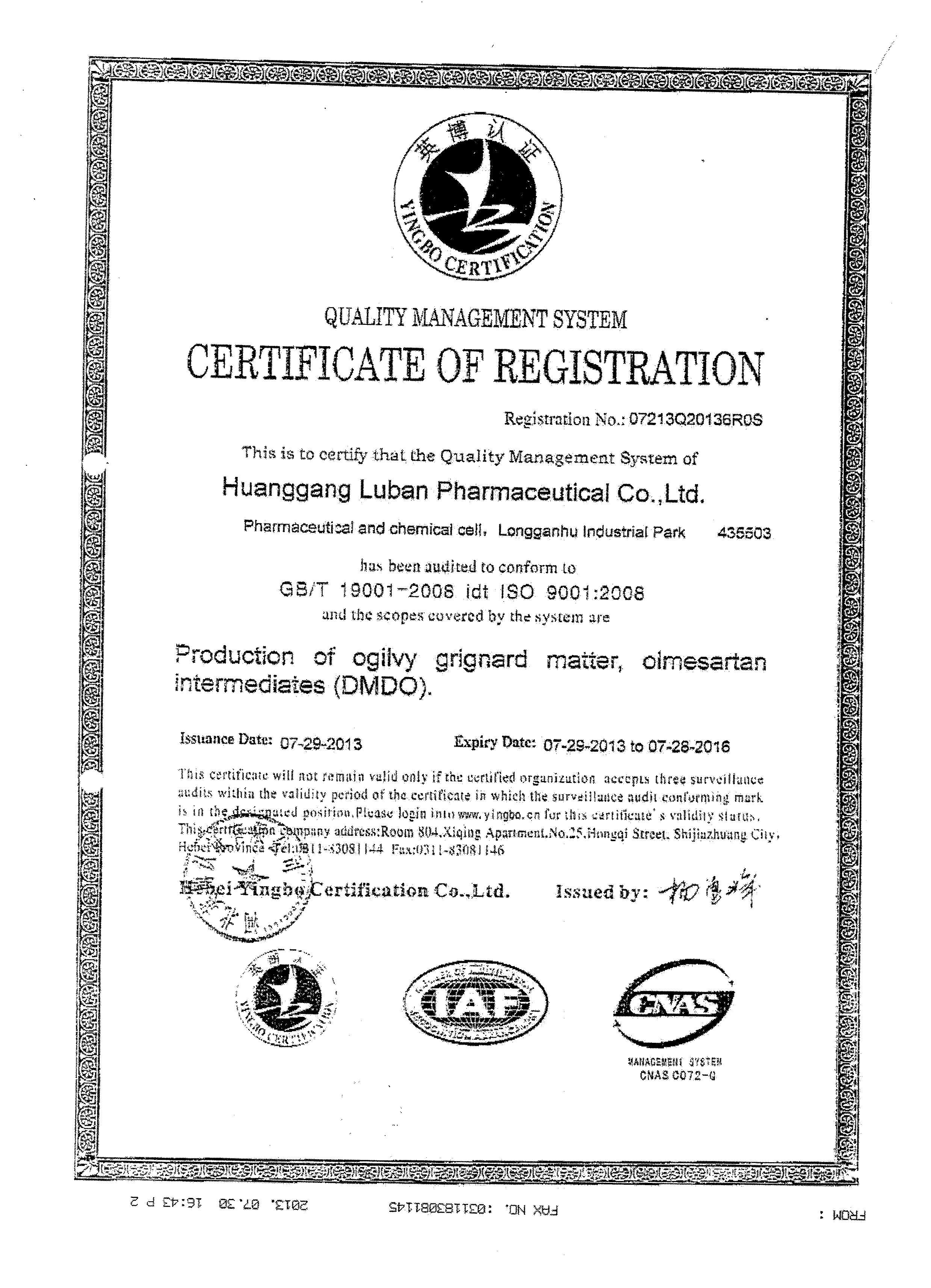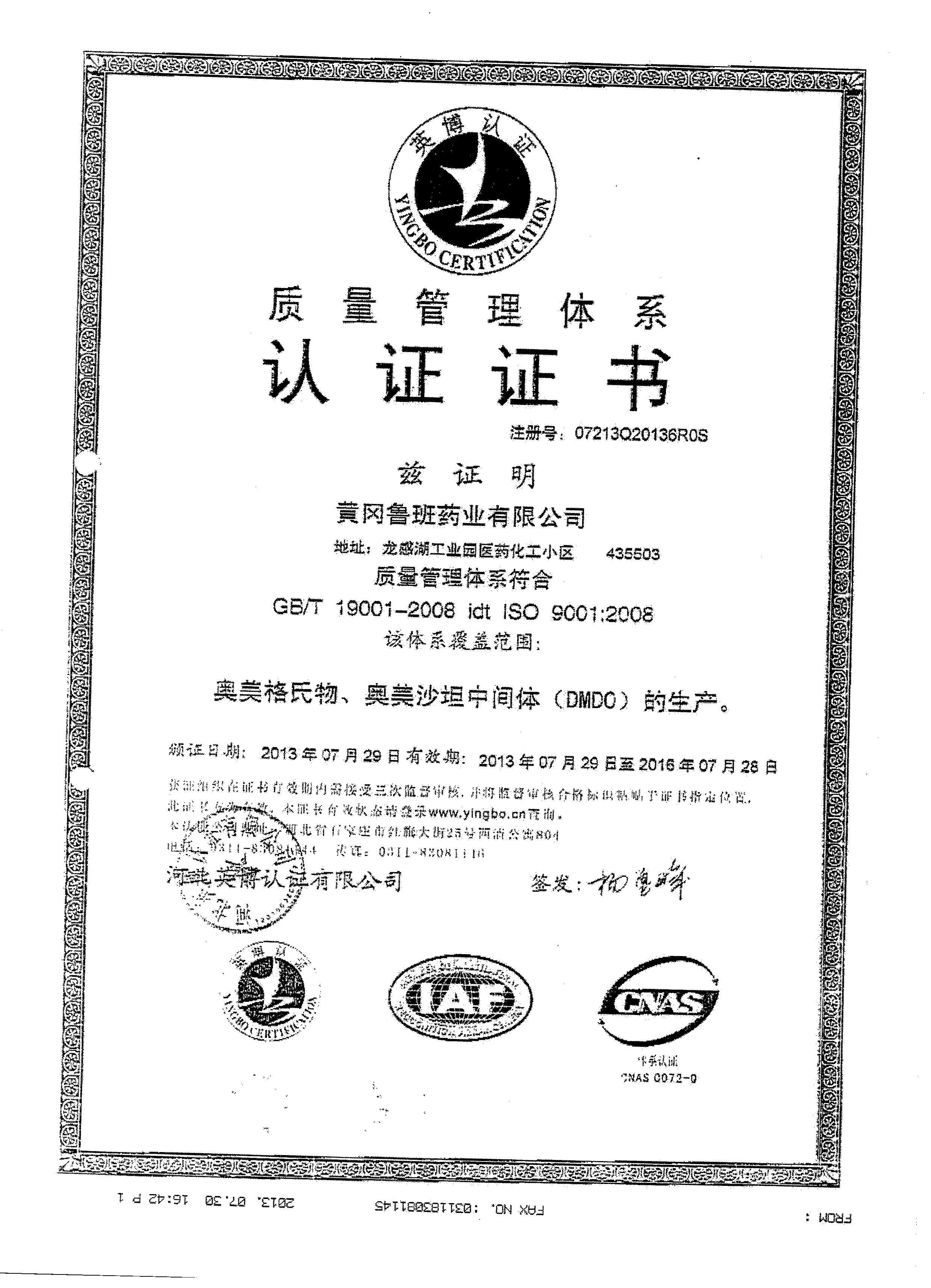 魯班藥業(yè)通過(guò)ISO9001質(zhì)量體系認證